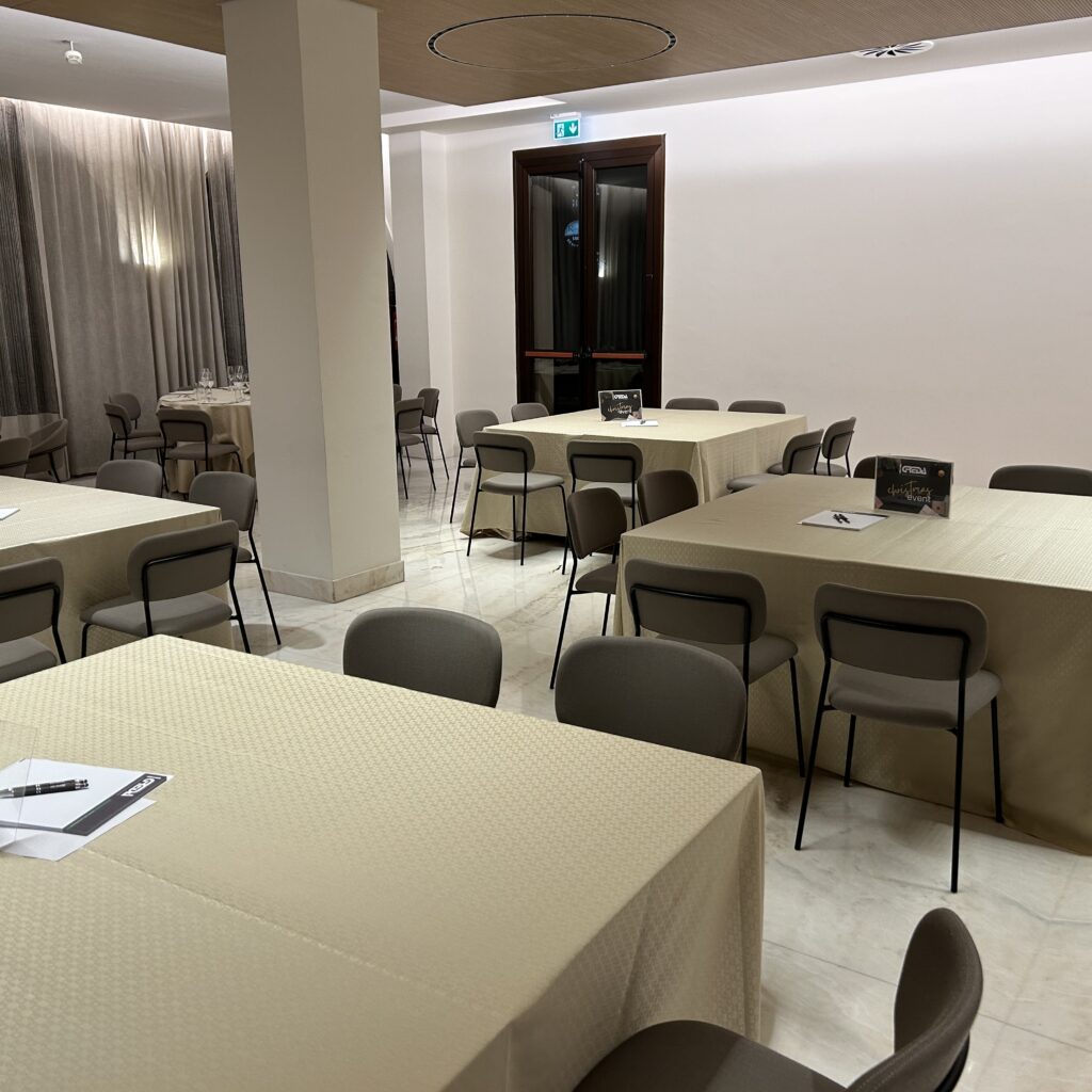 Gli invitati sono arrivati nella sala della location scelta e, dopo una presentazione della serata da parte del sottoscritto, in versione “Presentatore”, è iniziata la divertente serata cena-team building.